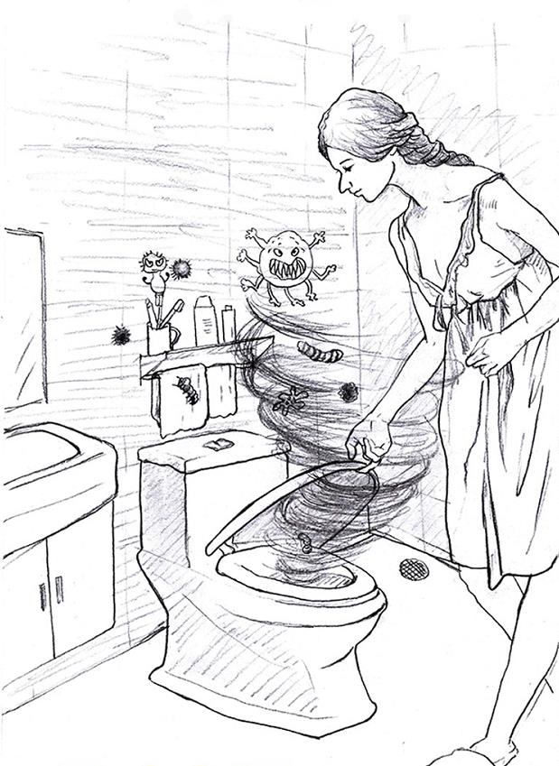 如廁完畢后,沖水時瞬間氣旋也會帶出大量排便物所含的有害菌及微生物;