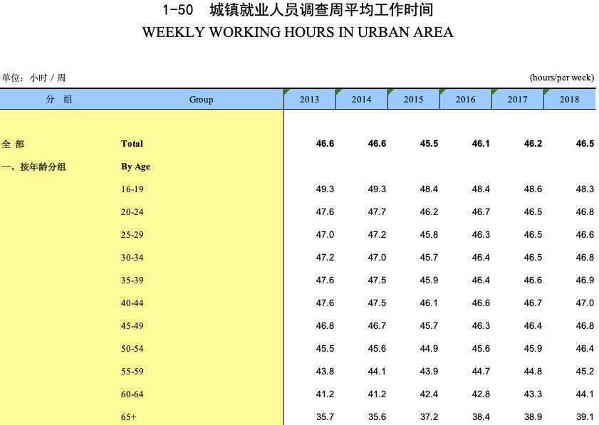 從時間層面來看,根據《中國勞動統計年鑒》顯示,直至2018年,我國城鎮就業人員周平均工作時間為46小時左右。算下來每天有近9.2小時的時間在工作,算上早晚通勤時間,每天花費在“上班工作”這一件事情上就長達10至11小時。如果你在一線城市工作,這個數字可能還要再繼續增加。