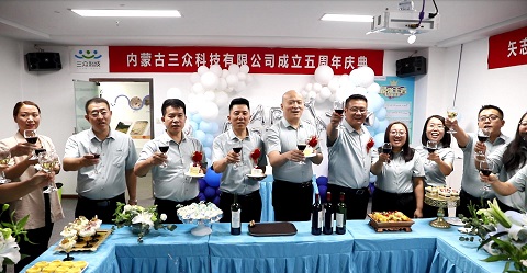 9月12日,三位聯(lián)合創(chuàng)始人及汪教授一同回到內(nèi)蒙古三眾科技有限公司,參加“三眾科技-霍夫曼先進(jìn)材料研究院聯(lián)合實(shí)驗(yàn)室成立揭牌儀式暨公司成立五周年慶典”活動(dòng)。