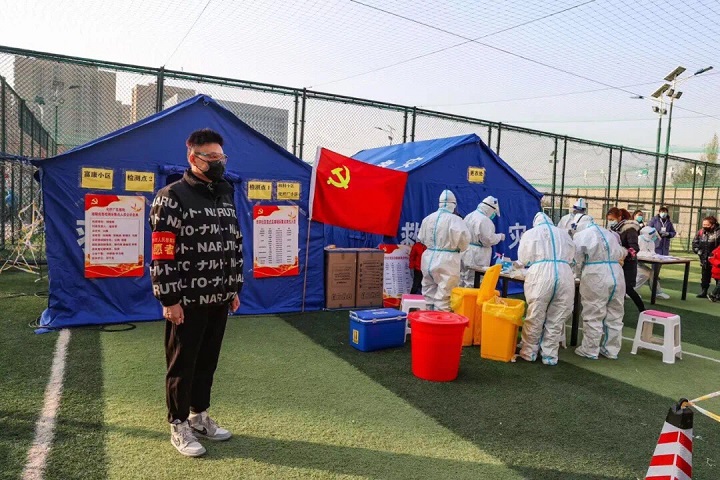 10月29日全市重點區域第二輪大規模核酸檢測有序展開。黨旗揚在核酸檢測點,人民有信仰,國家有力量,民族有希望。