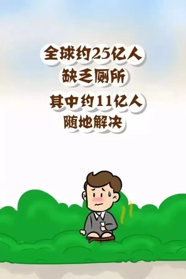 據(jù)統(tǒng)計(jì),現(xiàn)在全球仍有25億人得不到基本如廁條件,11億人隨地大小便,這對(duì)公共衛(wèi)生構(gòu)成嚴(yán)重威脅,可能給人類健康和環(huán)境造成災(zāi)難性后果。此外,每年全球有150 萬(wàn)兒童因缺乏衛(wèi)生設(shè)施而死于腹瀉,還有大量的兒童因此感染慢性腹瀉。